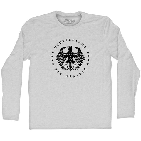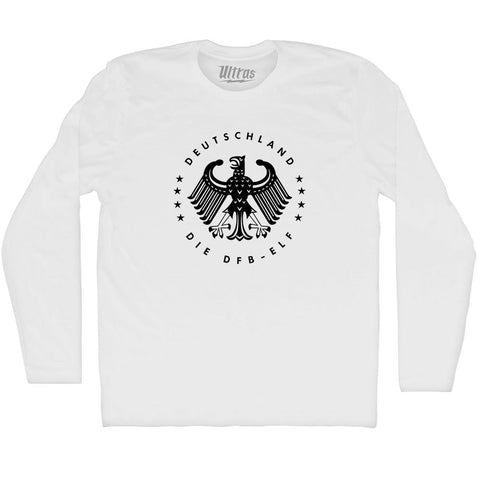 Product Story: Germany Eagle Deutschland Soccer 4 World Cups Adult Cotton Long Sleeve T-shirtProduct Description: Germany Eagle Deutschland Soccer 4 World Cups Adult Cotton Long Sleeve T-shirt Cotton Buttery Smooth Soft Material Medium Weight Tee Soft Hand Print