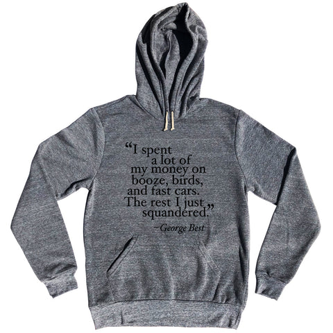Product Story: George Best Quote Soccer Tri-Blend HoodieProduct Description: George Best Quote Soccer Tri-Blend Hoodie 6.5 oz. Tri-Blend Cozy Soft Material Pre-Shrunk Set-in sleeves Pouch front pocket Ribbed bottom band and sleeve cuffs