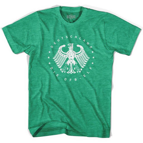 Product Story: Germany Deutschland Soccer Adult Tri-Blend T-shirtProduct Description: Germany Deutschland Soccer Adult Tri-Blend T-shirt Tri-Blend (Polyester, Rayon, Cotton) Buttery Smooth Soft Material Medium Weight Tee Soft Hand Print
