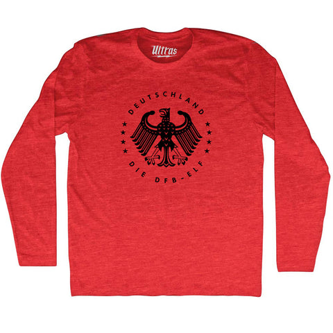 Product Story: Germany Eagle Deutschland Soccer 4 World Cups Adult Tri-Blend Long Sleeve T-shirtProduct Description: Germany Eagle Deutschland Soccer 4 World Cups Adult Tri-Blend Long Sleeve T-shirt Tri-Blend (Polyester, Rayon, Cotton) Buttery Smooth Soft Material Medium Weight Tee Soft Hand Print