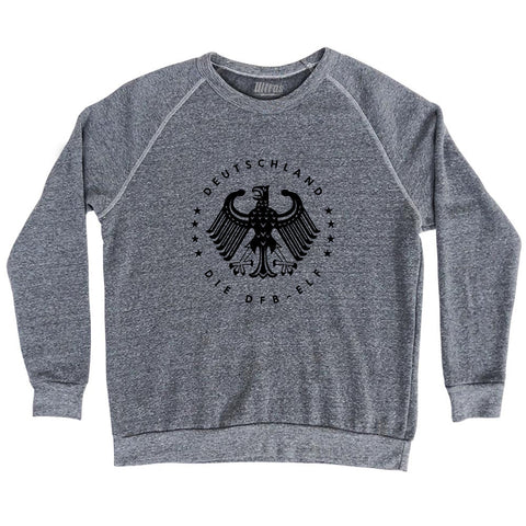 Product Story: Germany Eagle Deutschland Soccer 4 World Cups Adult Tri-Blend SweatshirtProduct Description: Germany Eagle Deutschland Soccer 4 World Cups Adult Tri-Blend Sweatshirt Tri-Blend (Polyester, Rayon, Cotton) Buttery Smooth Soft Material Medium Weight Tee Soft Hand Print