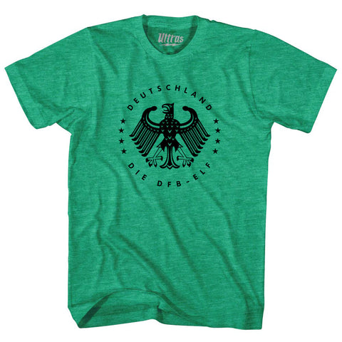 Product Story: Germany Eagle Deutschland Soccer 4 World Cups Adult Tri-Blend T-shirtProduct Description: Germany Eagle Deutschland Soccer 4 World Cups Adult Tri-Blend T-shirt Tri-Blend (Polyester, Rayon, Cotton) Buttery Smooth Soft Material Medium Weight Tee Soft Hand Print