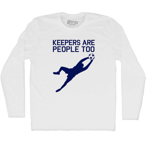 Product Story: Soccer Goal Keepers Are People Too Adult Cotton Long Sleeve T-shirtProduct Description: Soccer Goal Keepers Are People Too Adult Cotton Long Sleeve T-shirt Cotton Buttery Smooth Soft Material Medium Weight Tee Soft Hand Print