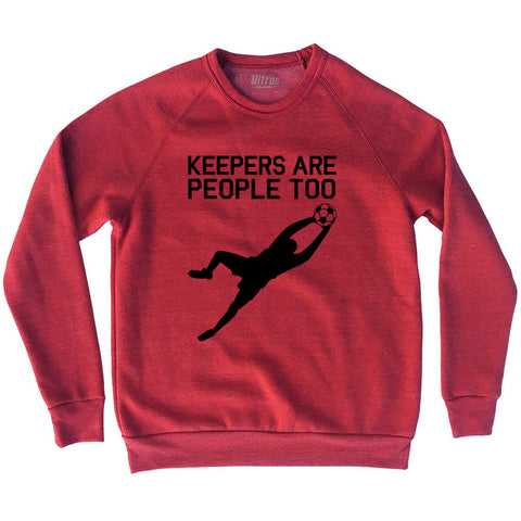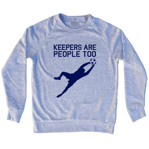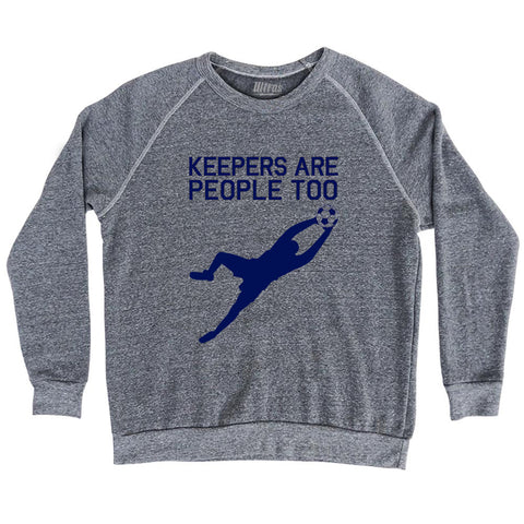 Product Story: Soccer Goal Keepers Are People Too Adult Tri-Blend SweatshirtProduct Description: Soccer Goal Keepers Are People Too Adult Tri-Blend Sweatshirt Tri-Blend (Polyester, Rayon, Cotton) Buttery Smooth Soft Material Medium Weight Tee Soft Hand Print