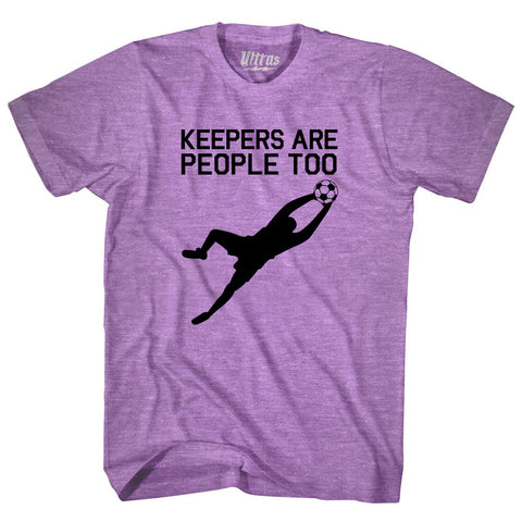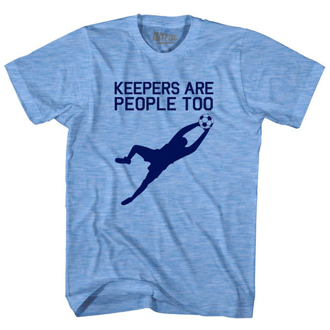 Product Story: Soccer Goal Keepers Are People Too Adult Tri-Blend T-shirtProduct Description: Soccer Goal Keepers Are People Too Adult Tri-Blend T-shirt Tri-Blend (Polyester, Rayon, Cotton) Buttery Smooth Soft Material Medium Weight Tee Soft Hand Print