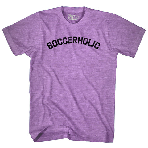 Product Story: Soccerholic Adult Tri-Blend T-shirtProduct Description: Soccerholic Adult Tri-Blend T-shirt Tri-Blend (Polyester, Rayon, Cotton) Buttery Smooth Soft Material Medium Weight Tee Soft Hand Print
