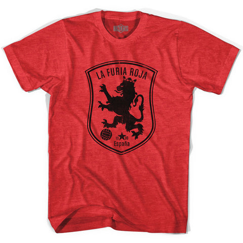 Product Story: Spain Espana La Furia Roja Soccer Adult Tri-Blend T-shirtProduct Description: Spain Espana La Furia Roja Soccer Adult Tri-Blend T-shirt Tri-Blend (Polyester, Rayon, Cotton) Buttery Smooth Soft Material Medium Weight Tee Soft Hand Print