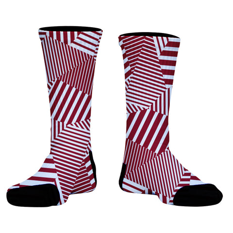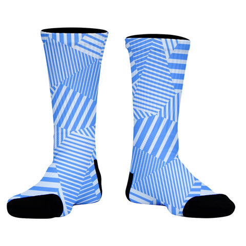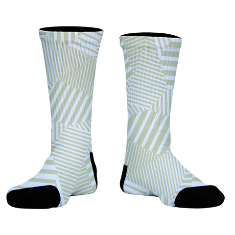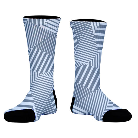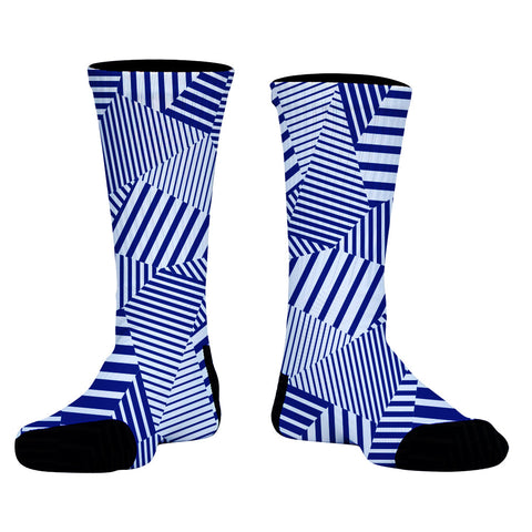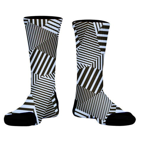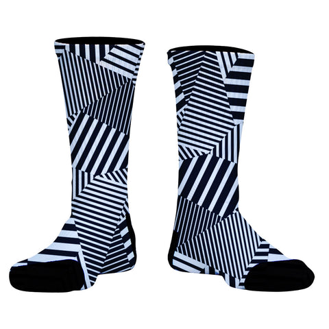 Product Story: Multiple Lines Pattern Athletic Crew SocksProduct Description: Multiple Lines Pattern Athletic Crew Socks Premium Athletic Sock Performance Terry Comfort High Performance 10 Inch Cuff Moisture Wicking Basketball Socks Cotton / Poly Blend