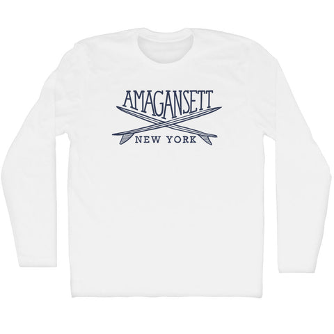 Product Story: Amagansett Surf Break Crossed Surf Board Surfing Destination Adult Cotton Long Sleeve T-ShirtProduct Description: Amagansett Surf Break Crossed Surf Board Surfing Destination Adult Cotton Long Sleeve T-Shirt Cotton (90% Cotton &10% Polyester) Buttery Smooth Soft Material Medium Weight Tee Soft Hand Print