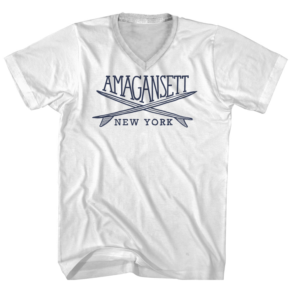 - Amagansett Surf Break Crossed Surf Board Surfing Destination Adult Cotton V-Neck T-Shirt