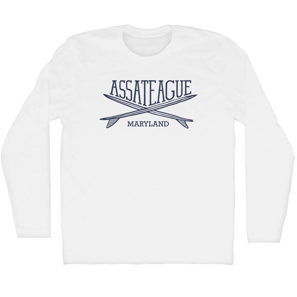- Assareague Surf Break Crossed Surf Board Surfing Destination Adult Cotton Long Sleeve T-Shirt