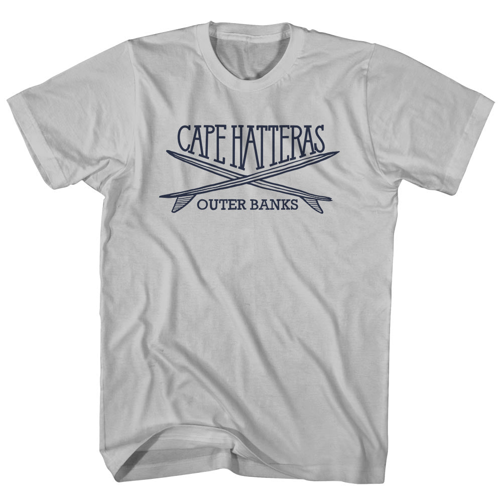 - Cape Hatteras Surf Break Crossed Surf Board Surfing Destination Adult Cotton T-Shirt
