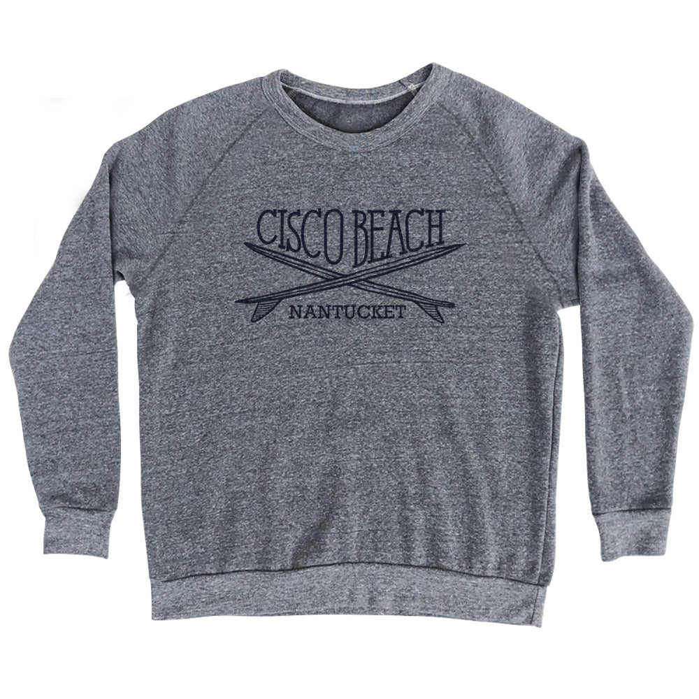 - Cisco Beach Surf Break Crossed Surf Board Surfing Destination Adult Tri-Blend Sweatshirt