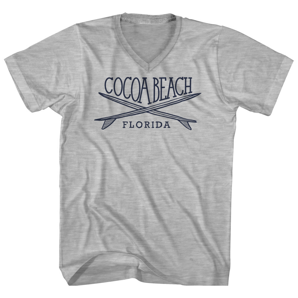 - Cocoa Beach Surf Break Crossed Surf Board Surfing Destination Adult Cotton V-Neck T-Shirt