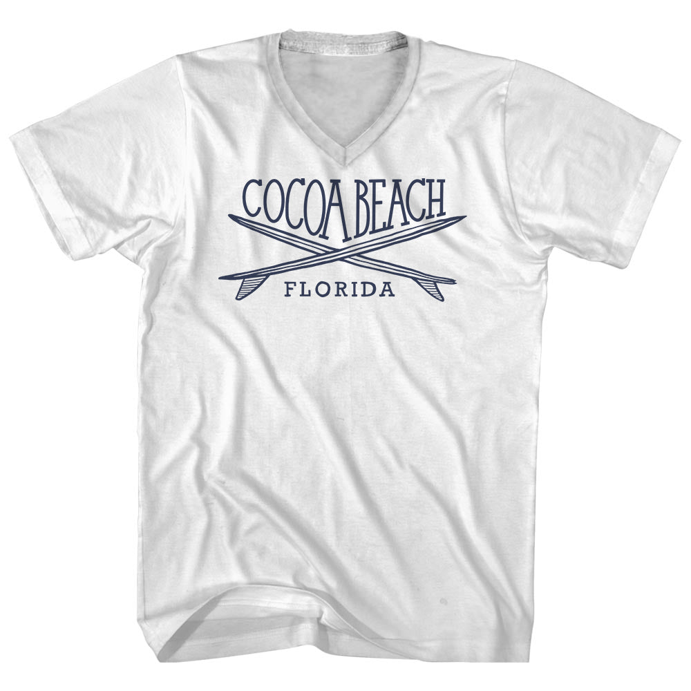 - Cocoa Beach Surf Break Crossed Surf Board Surfing Destination Adult Cotton V-Neck T-Shirt