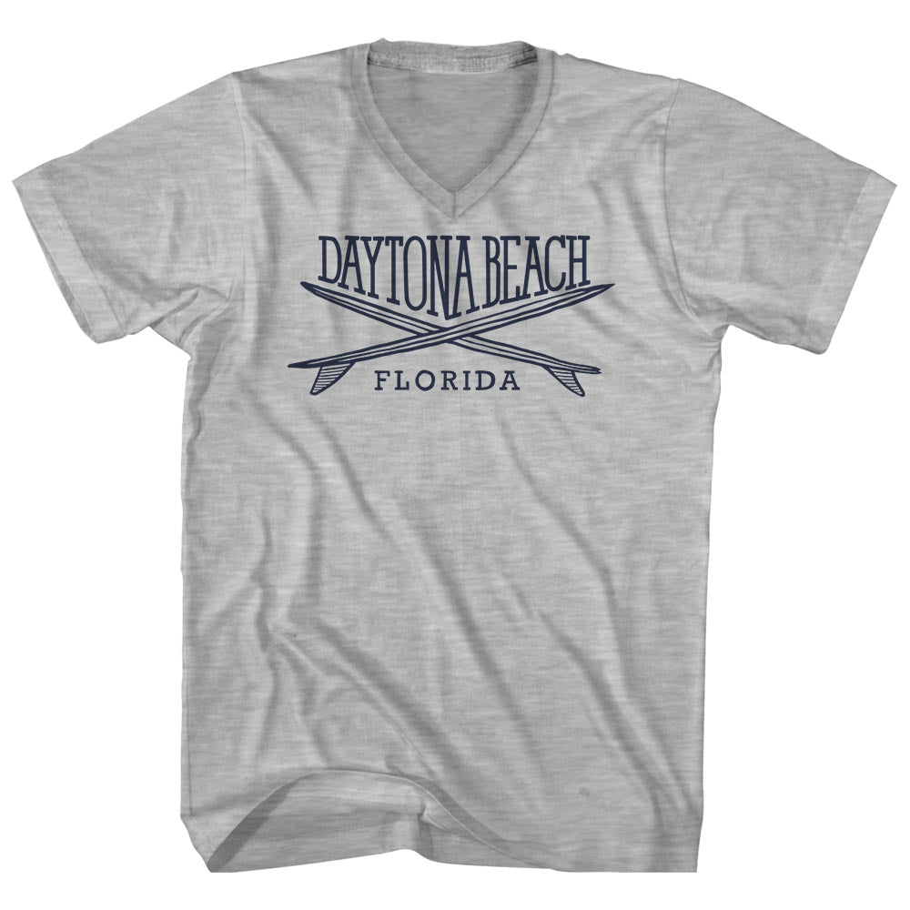 - Daytona Beach Surf Break Crossed Surf Board Surfing Destination Adult Cotton V-Neck T-Shirt