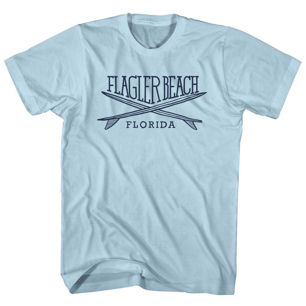 - Flagler Surf Break Crossed Surf Board Surfing Destination Adult Cotton T-Shirt