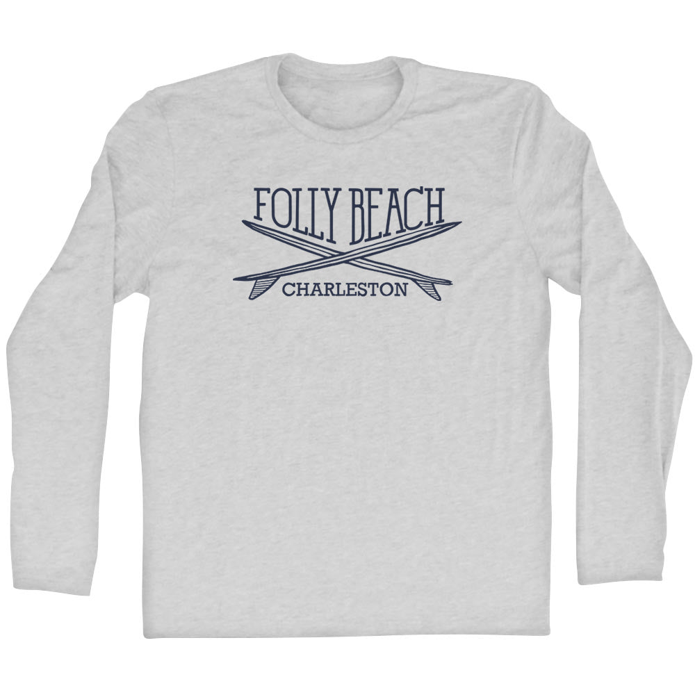 - Folly Beach Surf Break Crossed Surf Board Surfing Destination Adult Cotton Long Sleeve T-Shirt