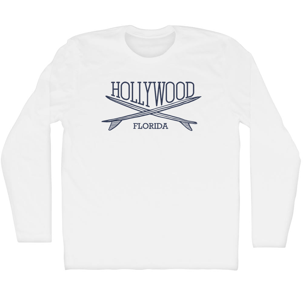 - Hollywood Surf Break Crossed Surf Board Surfing Destination Adult Cotton Long Sleeve T-Shirt