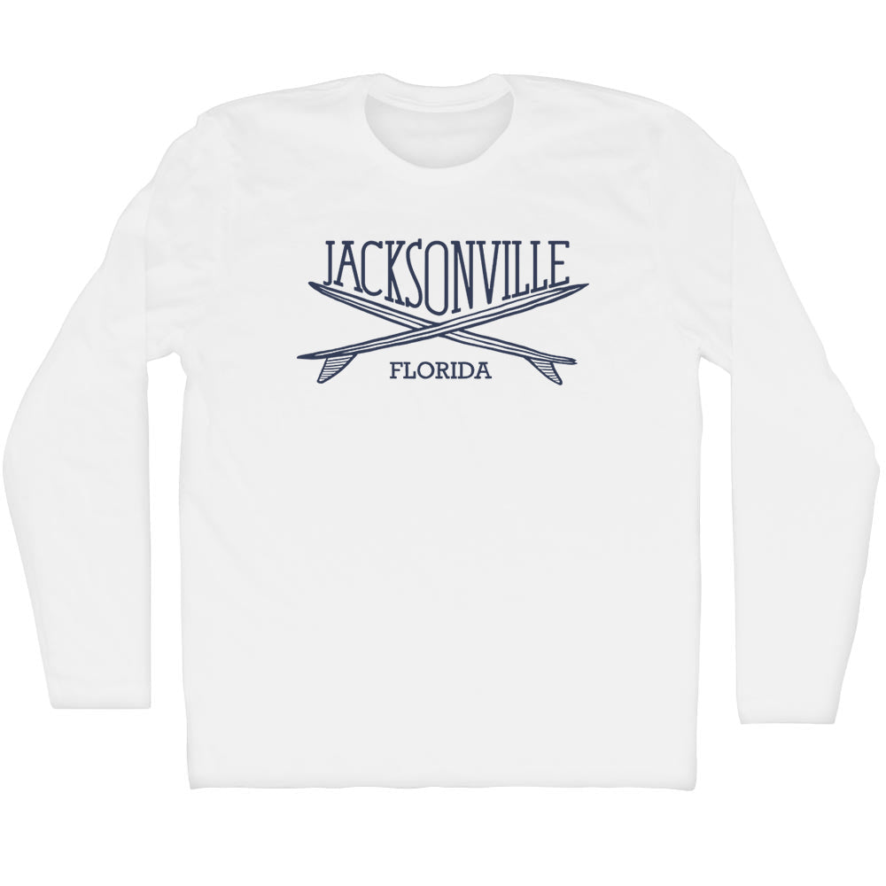 - Jacksonville Surf Break Crossed Surf Board Surfing Destination Adult Cotton Long Sleeve T-Shirt