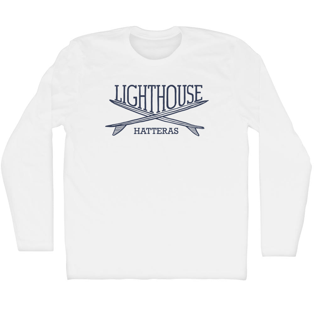 - Lighthouse Surf Break Crossed Surf Board Surfing Destination Adult Cotton Long Sleeve T-Shirt