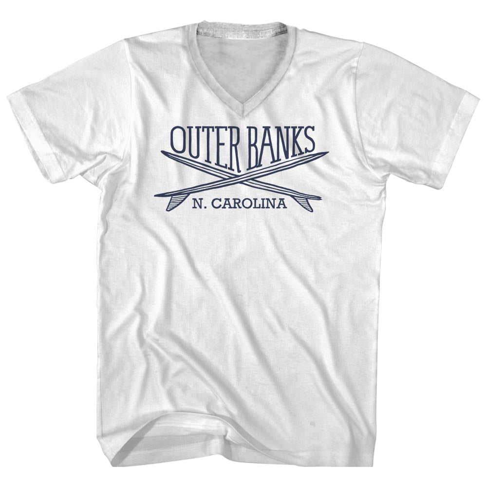- Outer Banks Surf Break Crossed Surf Board Surfing Destination Adult Cotton V-Neck T-Shirt