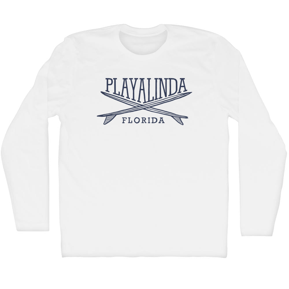 - Playalinda Surf Break Crossed Surf Board Surfing Destination Adult Cotton Long Sleeve T-Shirt