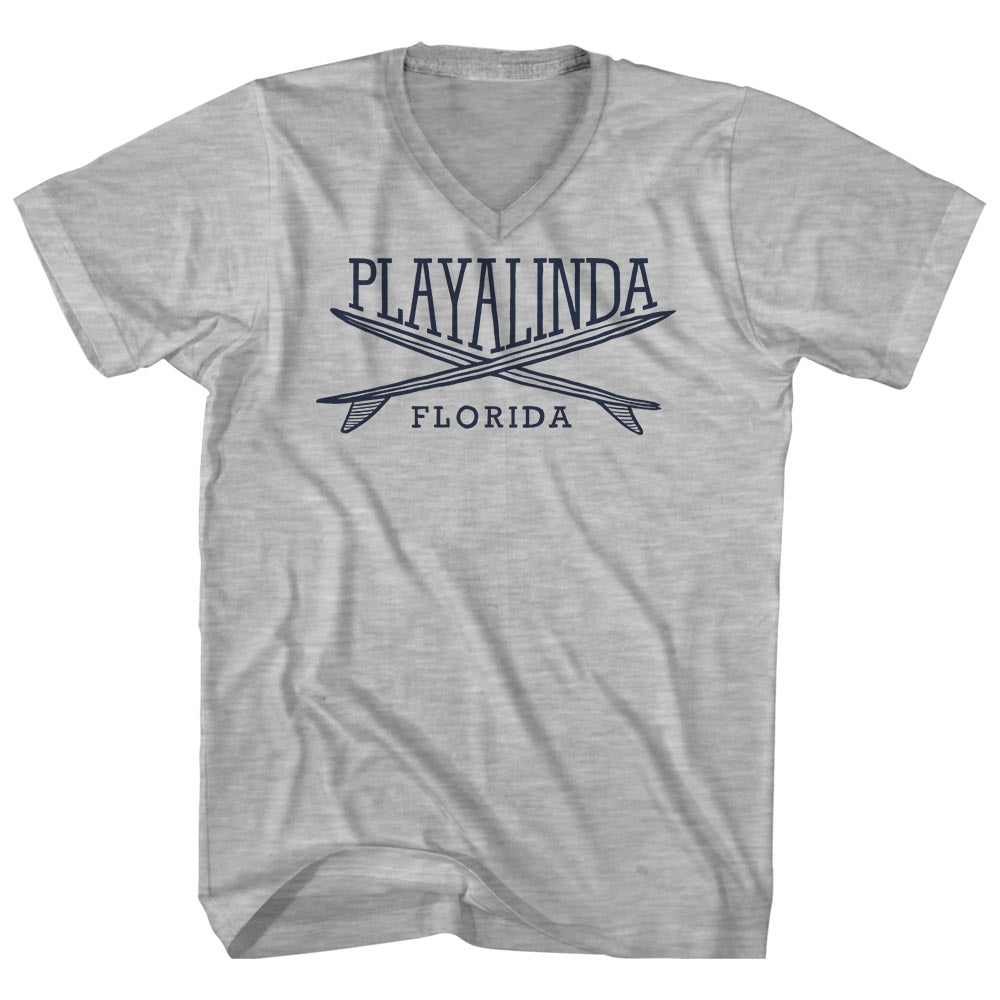 - Playalinda Surf Break Crossed Surf Board Surfing Destination Adult Cotton V-Neck T-Shirt