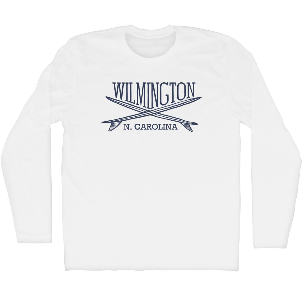 • Wilmington Surf Break Crossed Surf Board Surfing Destination Adult Cotton Long Sleeve T-Shirt