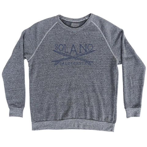 Product Story: Solano Surf Adult Tri-Blend SweatshirtProduct Description: Solano Surf Adult Tri-Blend Sweatshirt Tri-Blend (Polyester, Rayon, Cotton) Buttery Smooth Soft Material Medium Weight Tee Soft Hand Print