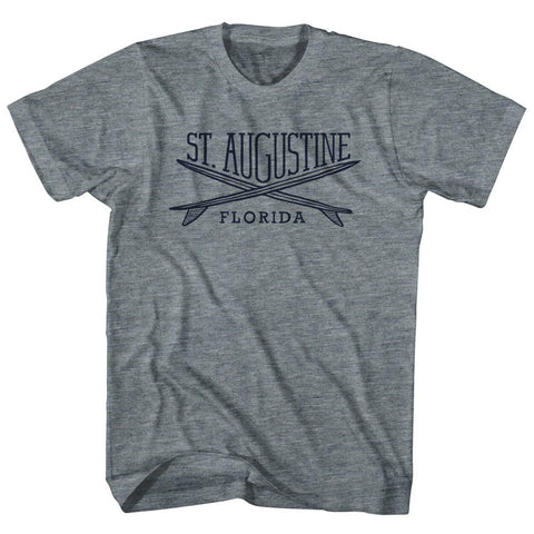 Product Story: St. Augustine Surf Break Crossed Surf Board Surfing Destination Womens Tri-Blend Junior Cut T-ShirtProduct Description: St. Augustine Surf Break Crossed Surf Board Surfing Destination Womens Tri-Blend Junior Cut T-Shirt Tri-Blend (Polyester, Rayon, Cotton) Buttery Smooth Soft Material Medium Weight Tee Soft Hand Print