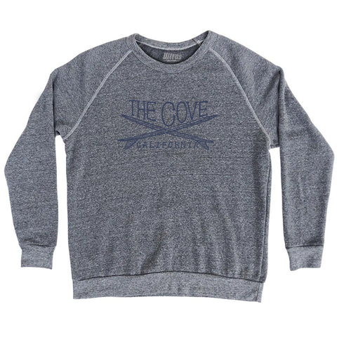 Product Story: The Cove Surf Adult Tri-Blend SweatshirtProduct Description: The Cove Surf Adult Tri-Blend Sweatshirt Tri-Blend (Polyester, Rayon, Cotton) Buttery Smooth Soft Material Medium Weight Tee Soft Hand Print