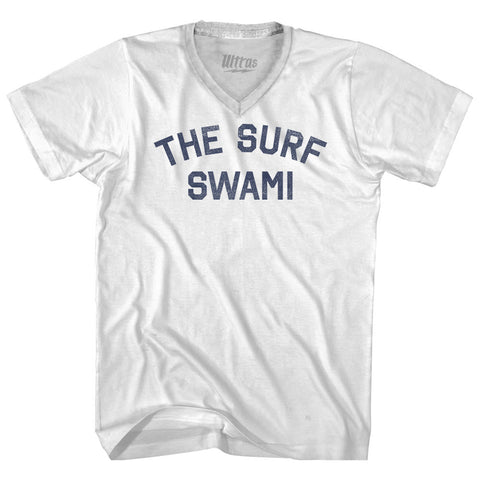 Product Story: The Surf Swami Adult Tri-Blend V-neck T-shirtProduct Description: The Surf Swami Adult Tri-Blend V-neck T-shirt Tri-Blend (Polyester, Rayon, Cotton) Buttery Smooth Soft Material Medium Weight Tee Soft Hand Print