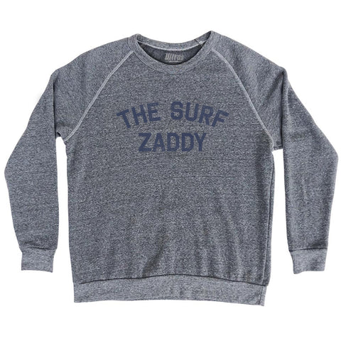 Product Story: The Surf Zaddy Adult Tri-Blend SweatshirtProduct Description: The Surf Zaddy Adult Tri-Blend Sweatshirt Tri-Blend (Polyester, Rayon, Cotton) Buttery Smooth Soft Material Medium Weight Tee Soft Hand Print