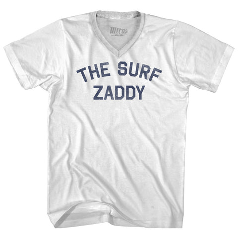 Product Story: The Surf Zaddy Adult Tri-Blend V-neck T-shirtProduct Description: The Surf Zaddy Adult Tri-Blend V-neck T-shirt Tri-Blend (Polyester, Rayon, Cotton) Buttery Smooth Soft Material Medium Weight Tee Soft Hand Print