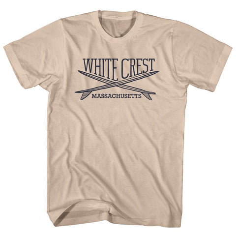 Product Story: White Surf Break Crossed Surf Board Surfing Destination Adult Cotton T-ShirtProduct Description: White Surf Break Crossed Surf Board Surfing Destination Adult Cotton T-Shirt Cotton Buttery Smooth Soft Material Medium Weight Tee Soft Hand Print