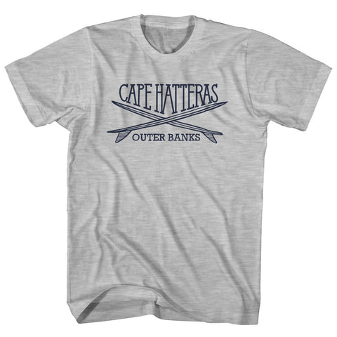 Product Story: Cape Hatteras Surf Break Crossed Surf Board Surfing Destination Adult Cotton T-ShirtProduct Description: Cape Hatteras Surf Break Crossed Surf Board Surfing Destination Adult Cotton T-Shirt Cotton Buttery Smooth Soft Material Medium Weight Tee Soft Hand Print