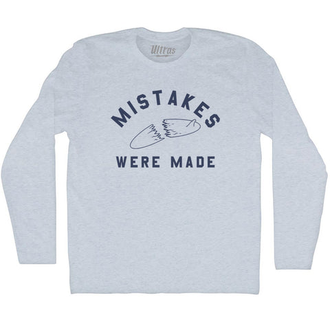 Product Story: Mistakes Were Made Broken Surf Board Adult Tri-Blend Long Sleeve T-shirtProduct Description: Mistakes Were Made Broken Surf Board Adult Tri-Blend Long Sleeve T-shirt Tri-Blend (Polyester, Rayon, Cotton) Buttery Smooth Soft Material Medium Weight Tee Soft Hand Print