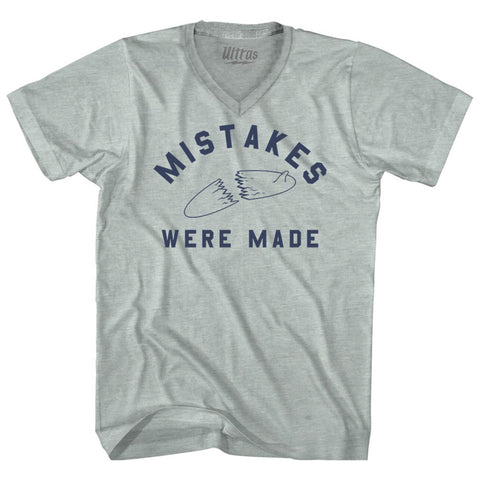 Product Story: Mistakes Were Made Broken Surf Board Adult Tri-Blend V-neck T-shirtProduct Description: Mistakes Were Made Broken Surf Board Adult Tri-Blend V-neck T-shirt Tri-Blend (Polyester, Rayon, Cotton) Buttery Smooth Soft Material Medium Weight Tee Soft Hand Print