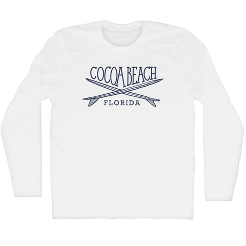 Product Story: Cocoa Beach Surf Break Crossed Surf Board Surfing Destination Adult Cotton Long Sleeve T-ShirtProduct Description: Cocoa Beach Surf Break Crossed Surf Board Surfing Destination Adult Cotton Long Sleeve T-Shirt Cotton (90% Cotton &10% Polyester) Buttery Smooth Soft Material Medium Weight Tee Soft Hand Print