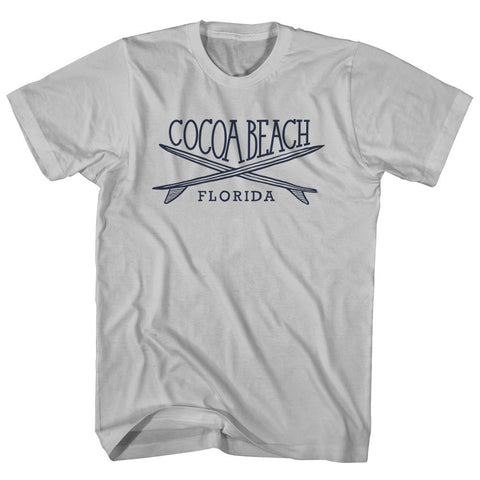 Product Story: Cocoa Beach Surf Break Crossed Surf Board Surfing Destination Adult Cotton T-ShirtProduct Description: Cocoa Beach Surf Break Crossed Surf Board Surfing Destination Adult Cotton T-Shirt Cotton Buttery Smooth Soft Material Medium Weight Tee Soft Hand Print