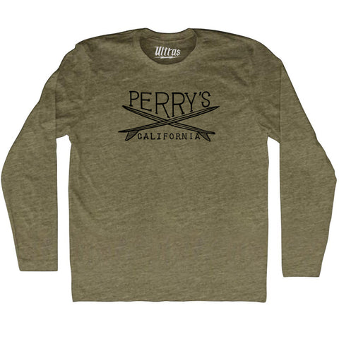 Product Story: Perrys Surf Adult Tri-Blend Long Sleeve T-shirtProduct Description: Perrys Surf Adult Tri-Blend Long Sleeve T-shirt Tri-Blend (Polyester, Rayon, Cotton) Buttery Smooth Soft Material Medium Weight Tee Soft Hand Print