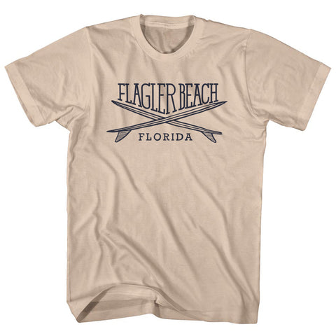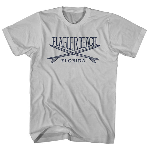 Product Story: Flagler Surf Break Crossed Surf Board Surfing Destination Adult Cotton T-ShirtProduct Description: Flagler Surf Break Crossed Surf Board Surfing Destination Adult Cotton T-Shirt Cotton Buttery Smooth Soft Material Medium Weight Tee Soft Hand Print