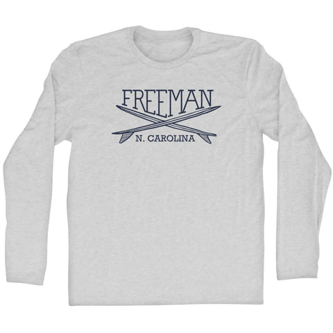 Product Story: Freeman Surf Break Crossed Surf Board Surfing Destination Adult Cotton Long Sleeve T-ShirtProduct Description: Freeman Surf Break Crossed Surf Board Surfing Destination Adult Cotton Long Sleeve T-Shirt Cotton (90% Cotton &10% Polyester) Buttery Smooth Soft Material Medium Weight Tee Soft Hand Print