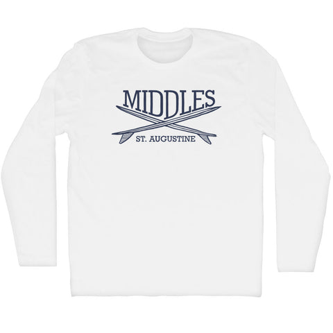 Product Story: Middles Surf Break Crossed Surf Board Surfing Destination Adult Cotton Long Sleeve T-ShirtProduct Description: Middles Surf Break Crossed Surf Board Surfing Destination Adult Cotton Long Sleeve T-Shirt Cotton Buttery Smooth Soft Material Medium Weight Tee Soft Hand Print