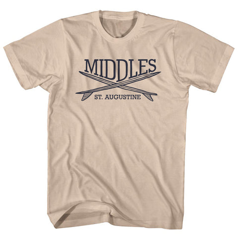 Product Story: Middles Surf Break Crossed Surf Board Surfing Destination Adult Cotton T-ShirtProduct Description: Middles Surf Break Crossed Surf Board Surfing Destination Adult Cotton T-Shirt Cotton Buttery Smooth Soft Material Medium Weight Tee Soft Hand Print