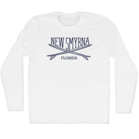 Product Story: New Smyrna Surf Break Crossed Surf Board Surfing Destination Adult Cotton Long Sleeve T-ShirtProduct Description: New Smyrna Surf Break Crossed Surf Board Surfing Destination Adult Cotton Long Sleeve T-Shirt Cotton (90% Cotton &10% Polyester) Buttery Smooth Soft Material Medium Weight Tee Soft Hand Print