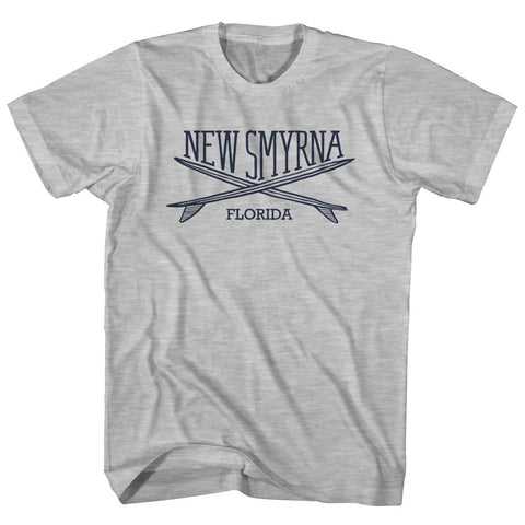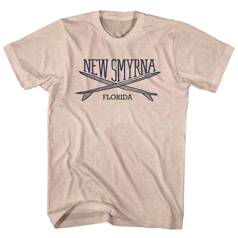 Product Story: New Smyrna Surf Break Crossed Surf Board Surfing Destination Adult Cotton T-ShirtProduct Description: New Smyrna Surf Break Crossed Surf Board Surfing Destination Adult Cotton T-Shirt Cotton Buttery Smooth Soft Material Medium Weight Tee Soft Hand Print