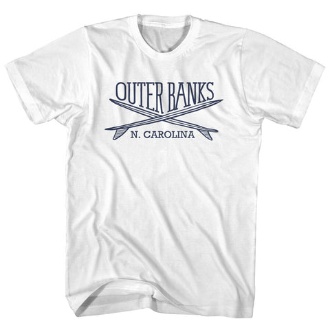 Product Story: Outer Banks Surf Break Crossed Surf Board Surfing Destination Adult Cotton T-ShirtProduct Description: Outer Banks Surf Break Crossed Surf Board Surfing Destination Adult Cotton T-Shirt Cotton Buttery Smooth Soft Material Medium Weight Tee Soft Hand Print