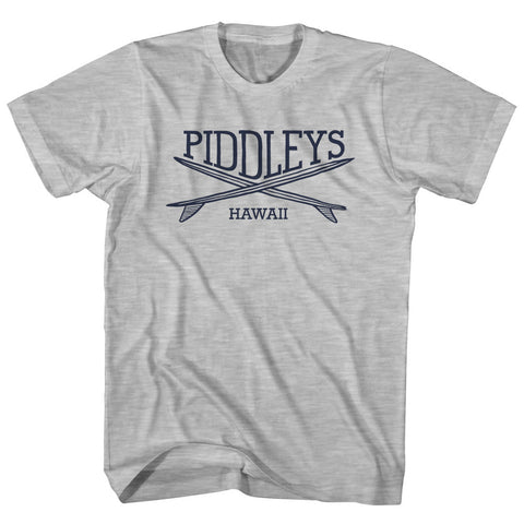 Product Story: Piddleys Surf Break Crossed Surf Board Surfing Destination Adult Tri-Blend T-ShirtProduct Description: Piddleys Surf Break Crossed Surf Board Surfing Destination Adult Tri-Blend T-Shirt Tri-Blend (Polyester, Rayon, Cotton) Buttery Smooth Soft Material